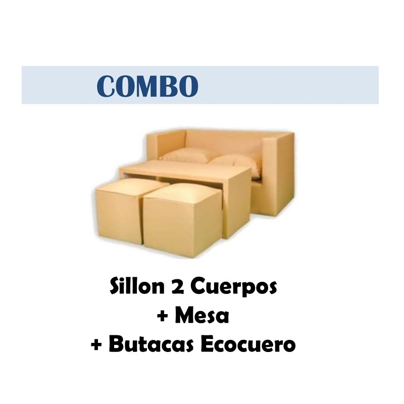 / Combo Sillon – MELISA – 2 Cuerpos + Mesa + Butacas / Tapizado Ecocuero